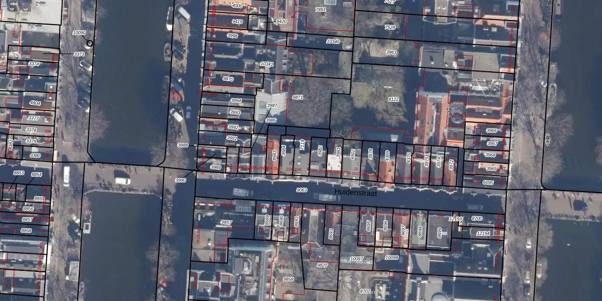 Huidenstraat 22-B is gelegen op kadastraal perceel ASD03E7119. Deze kadastrale aanduiding is uniek en wordt gebruikt door het Kadaster om eigendomsrechten en andere zakelijke rechten vast te leggen. Het perceel maakt onderdeel uit van de kadastrale gemeente Amsterdam.