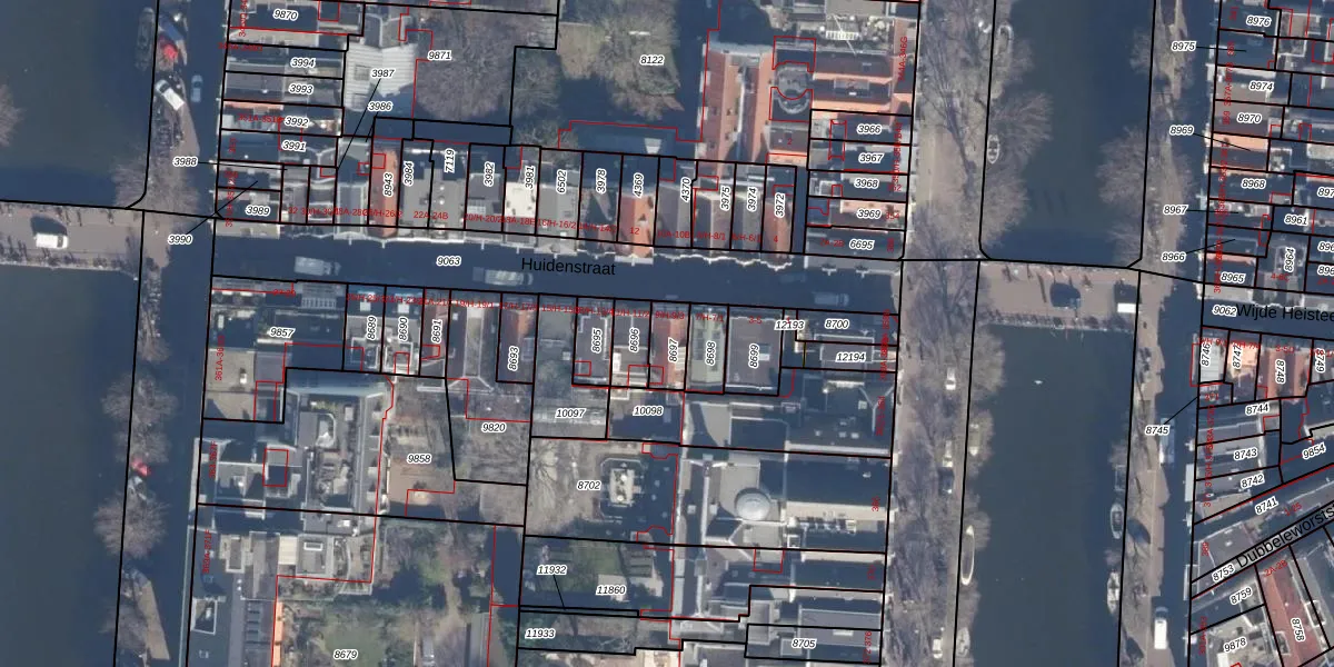 Huidenstraat 9-H is gelegen op kadastraal perceel ASD06I8697. Deze kadastrale aanduiding is uniek en wordt gebruikt door het Kadaster om eigendomsrechten en andere zakelijke rechten vast te leggen. Het perceel maakt onderdeel uit van de kadastrale gemeente Amsterdam.