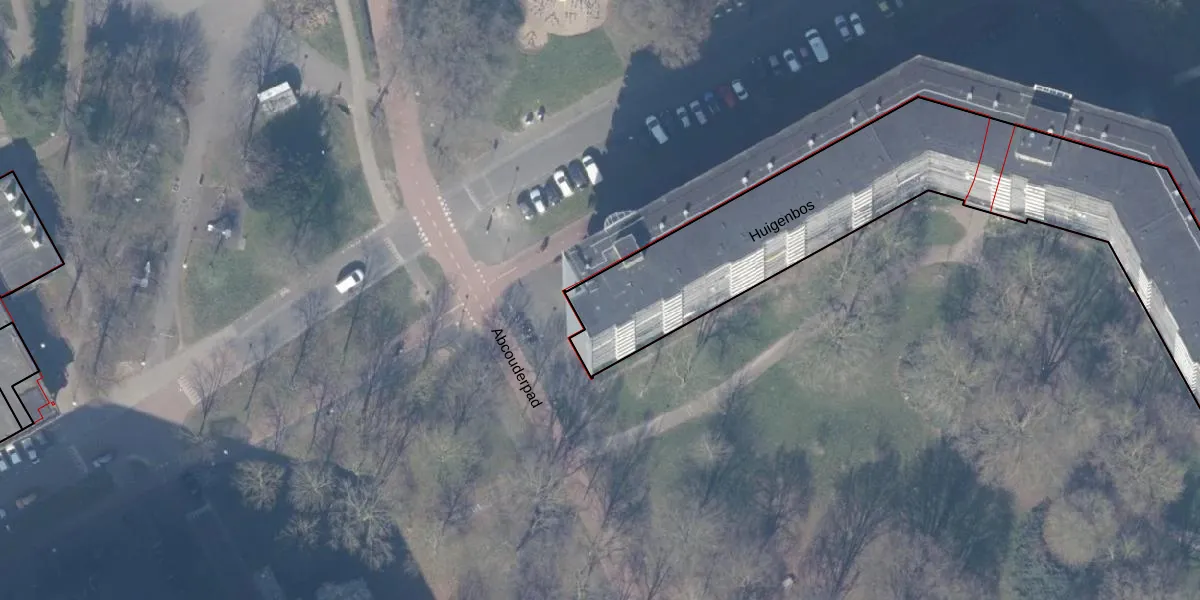 Het perceel waarop Huigenbos 1 staat heeft een oppervlakte van 4959 m². Dit is een zeer groot perceel. De perceeloppervlakte wordt geregistreerd door het Kadaster. Gedetailleerde informatie over de maten van dit perceel kunt u vinden in het rapport Kadastrale kaart met maatvoering van Huigenbos 1.