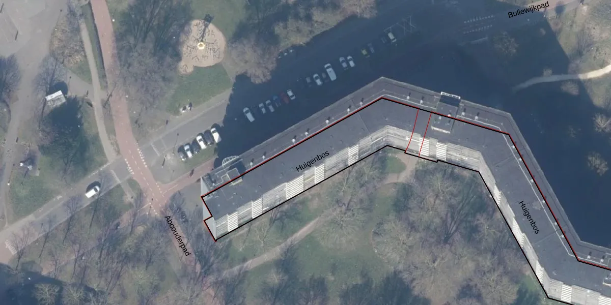 Het perceel waarop Huigenbos 105 staat heeft een oppervlakte van 4959 m². Dit is een zeer groot perceel. De perceeloppervlakte wordt geregistreerd door het Kadaster. Gedetailleerde informatie over de maten van dit perceel kunt u vinden in het rapport Kadastrale kaart met maatvoering van Huigenbos 105.