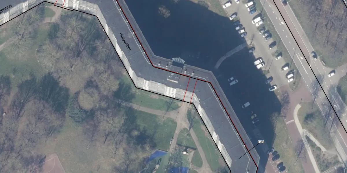 Huigenbos 222 is gelegen op kadastraal perceel WPK02L5088. Deze kadastrale aanduiding is uniek en wordt gebruikt door het Kadaster om eigendomsrechten en andere zakelijke rechten vast te leggen. Het perceel maakt onderdeel uit van de kadastrale gemeente Weesperkarspel.