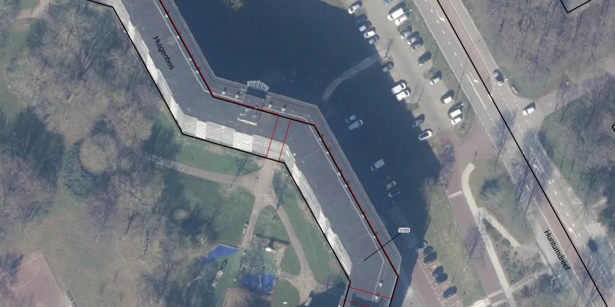 Het perceel waarop Huigenbos 23 staat heeft een oppervlakte van 4959 m². Dit is een zeer groot perceel. De perceeloppervlakte wordt geregistreerd door het Kadaster. Gedetailleerde informatie over de maten van dit perceel kunt u vinden in het rapport Kadastrale kaart met maatvoering van Huigenbos 23.