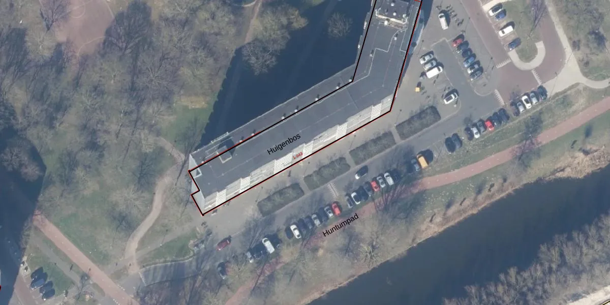 Het perceel waarop Huigenbos 234 staat heeft een oppervlakte van 4959 m². Dit is een zeer groot perceel. De perceeloppervlakte wordt geregistreerd door het Kadaster. Gedetailleerde informatie over de maten van dit perceel kunt u vinden in het rapport Kadastrale kaart met maatvoering van Huigenbos 234.