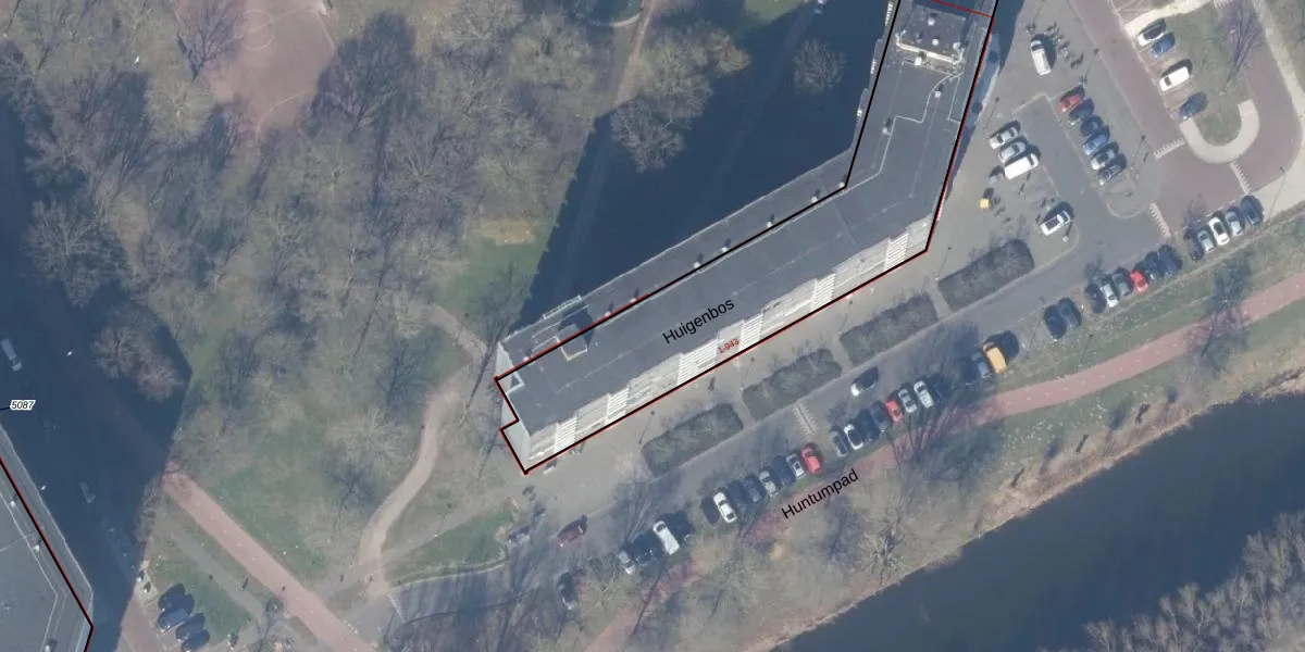 Het perceel waarop Huigenbos 38 staat heeft een oppervlakte van 4959 m². Dit is een zeer groot perceel. De perceeloppervlakte wordt geregistreerd door het Kadaster. Gedetailleerde informatie over de maten van dit perceel kunt u vinden in het rapport Kadastrale kaart met maatvoering van Huigenbos 38.