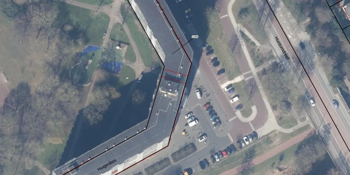 Het perceel waarop Huigenbos 530 staat heeft een oppervlakte van 4959 m². Dit is een zeer groot perceel. De perceeloppervlakte wordt geregistreerd door het Kadaster. Gedetailleerde informatie over de maten van dit perceel kunt u vinden in het rapport Kadastrale kaart met maatvoering van Huigenbos 530.