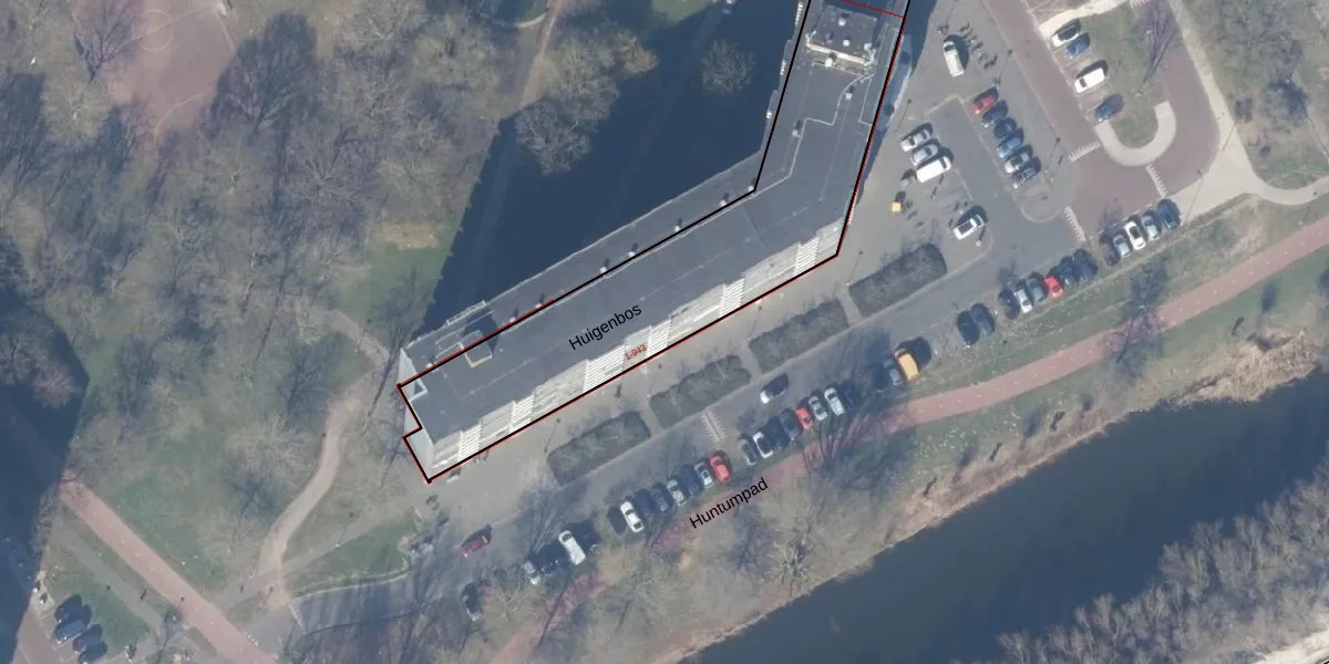 Het perceel waarop Huigenbos 633 staat heeft een oppervlakte van 4959 m². Dit is een zeer groot perceel. De perceeloppervlakte wordt geregistreerd door het Kadaster. Gedetailleerde informatie over de maten van dit perceel kunt u vinden in het rapport Kadastrale kaart met maatvoering van Huigenbos 633.