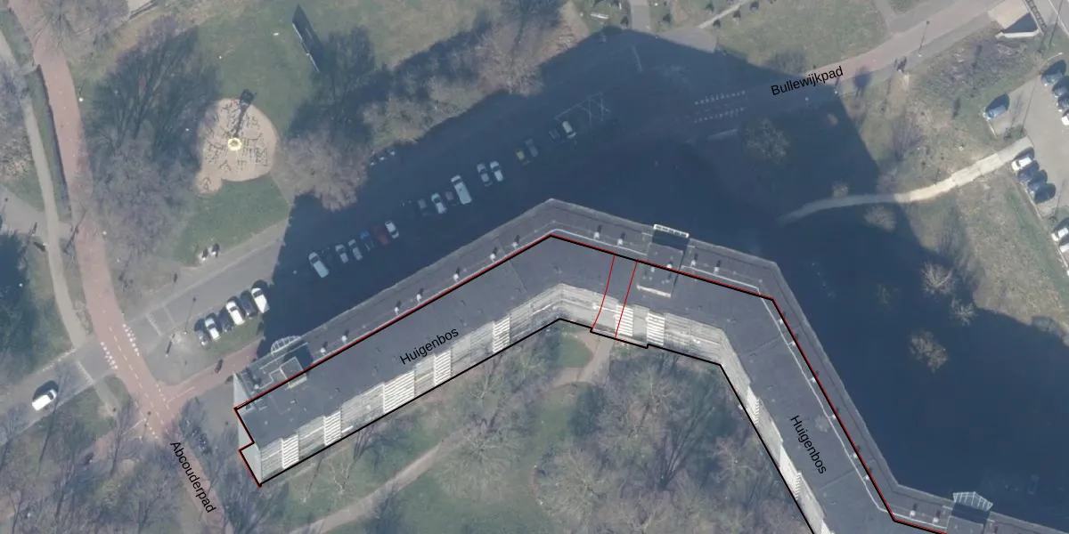 Het perceel waarop Huigenbos 8 staat heeft een oppervlakte van 4959 m². Dit is een zeer groot perceel. De perceeloppervlakte wordt geregistreerd door het Kadaster. Gedetailleerde informatie over de maten van dit perceel kunt u vinden in het rapport Kadastrale kaart met maatvoering van Huigenbos 8.
