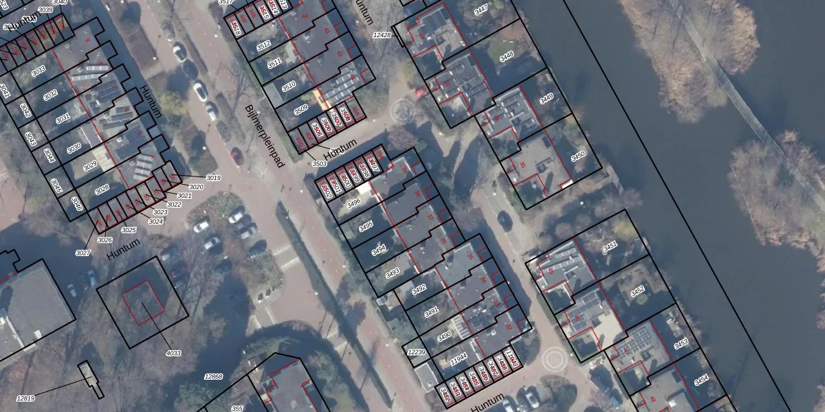 Het perceel waarop Huntum 38 staat heeft een oppervlakte van 163 m². Dit is een middelgroot perceel. De perceeloppervlakte wordt geregistreerd door het Kadaster. Gedetailleerde informatie over de maten van dit perceel kunt u vinden in het rapport Kadastrale kaart met maatvoering van Huntum 38.