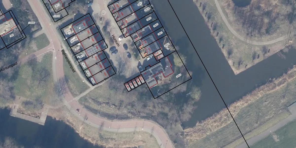 Het perceel waarop Huntum 53 staat heeft een oppervlakte van 592 m². Dit is een groot perceel. De perceeloppervlakte wordt geregistreerd door het Kadaster. Gedetailleerde informatie over de maten van dit perceel kunt u vinden in het rapport Kadastrale kaart met maatvoering van Huntum 53.