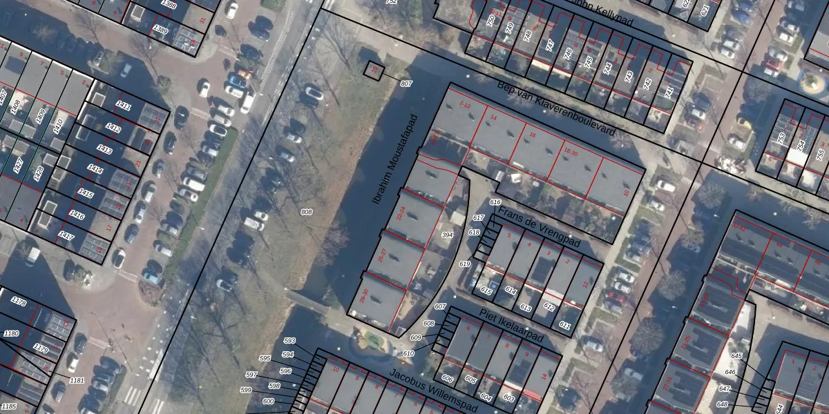 Het perceel waarop Ibrahim Moustafapad 23 staat heeft een oppervlakte van 1706 m². Dit is een zeer groot perceel. De perceeloppervlakte wordt geregistreerd door het Kadaster. Gedetailleerde informatie over de maten van dit perceel kunt u vinden in het rapport Kadastrale kaart met maatvoering van Ibrahim Moustafapad 23.