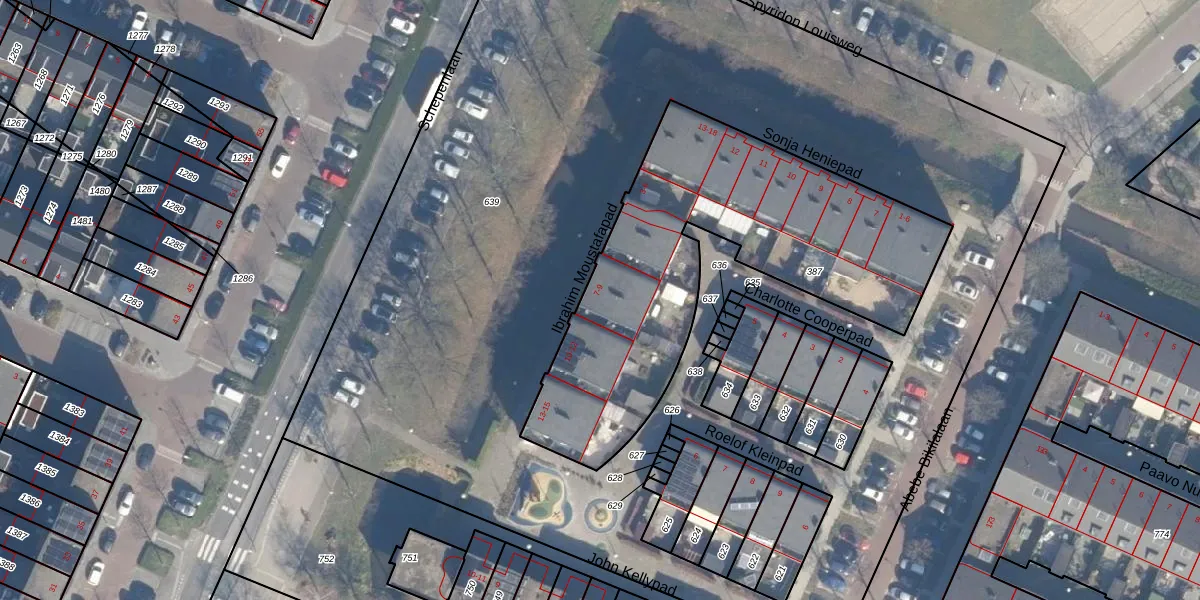 Het perceel waarop Ibrahim Moustafapad 9 staat heeft een oppervlakte van 1732 m². Dit is een zeer groot perceel. De perceeloppervlakte wordt geregistreerd door het Kadaster. Gedetailleerde informatie over de maten van dit perceel kunt u vinden in het rapport Kadastrale kaart met maatvoering van Ibrahim Moustafapad 9.