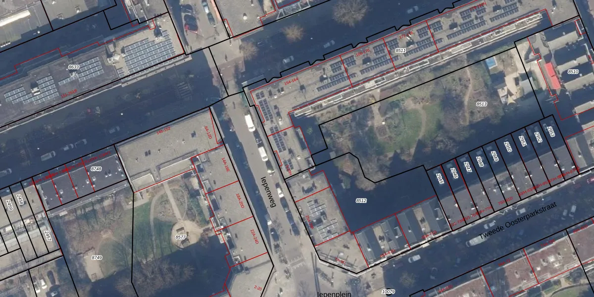 Het adres is gelegen op perceel 8511 in de sectie S en de kadastrale gemeente Amsterdam. De kadastrale aanduiding is aldus ASD15-S-8511. De oppervlakte van het perceel is 2557 m². Dat is groter dan gemiddeld in Amsterdam, waar de gemiddelde perceeloppervlakte op 537,06 m² ligt. De grootste perceeloppervlakte in de kadastrale gemeente is 14,5 ha. De kleinste oppervlakte bedraagt 0 m². Op het perceel liggen in totaal 88 adressen. De huidige grenzen van het perceel zijn digitaal in de Basisregistratie Kadaster (BRK) geregistreerd op 17-11-2006.