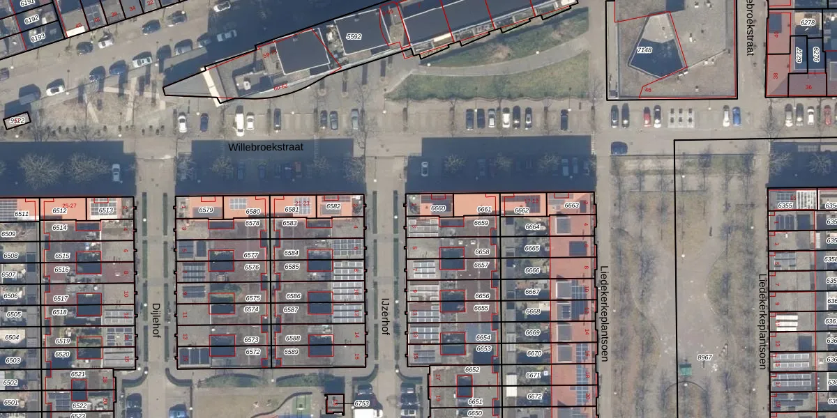 Het perceel waarop IJzerhof 1 staat heeft een oppervlakte van 62 m². Dit is een klein perceel. De perceeloppervlakte wordt geregistreerd door het Kadaster. Gedetailleerde informatie over de maten van dit perceel kunt u vinden in het rapport Kadastrale kaart met maatvoering van IJzerhof 1.