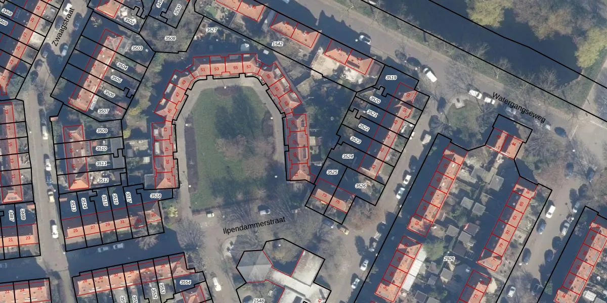 Het perceel waarop Ilpendammerstraat 69 staat heeft een oppervlakte van 1900 m². Dit is een zeer groot perceel. De perceeloppervlakte wordt geregistreerd door het Kadaster. Gedetailleerde informatie over de maten van dit perceel kunt u vinden in het rapport Kadastrale kaart met maatvoering van Ilpendammerstraat 69.