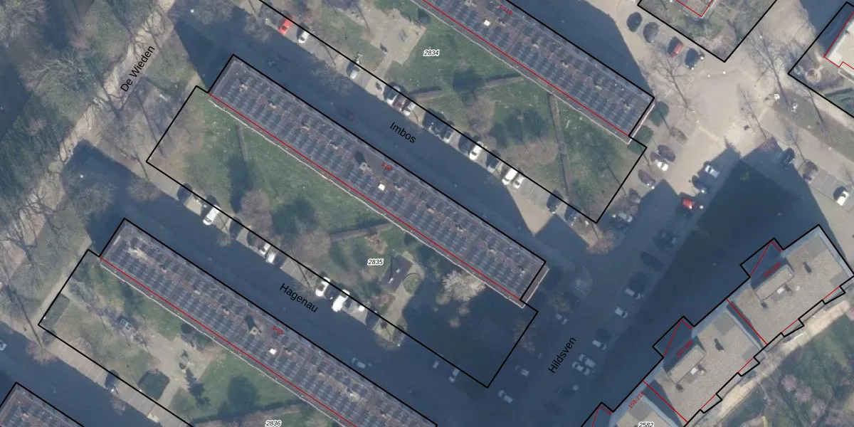 Het perceel waarop Imbos 23 staat heeft een oppervlakte van 2976 m². Dit is een zeer groot perceel. De perceeloppervlakte wordt geregistreerd door het Kadaster. Gedetailleerde informatie over de maten van dit perceel kunt u vinden in het rapport Kadastrale kaart met maatvoering van Imbos 23.