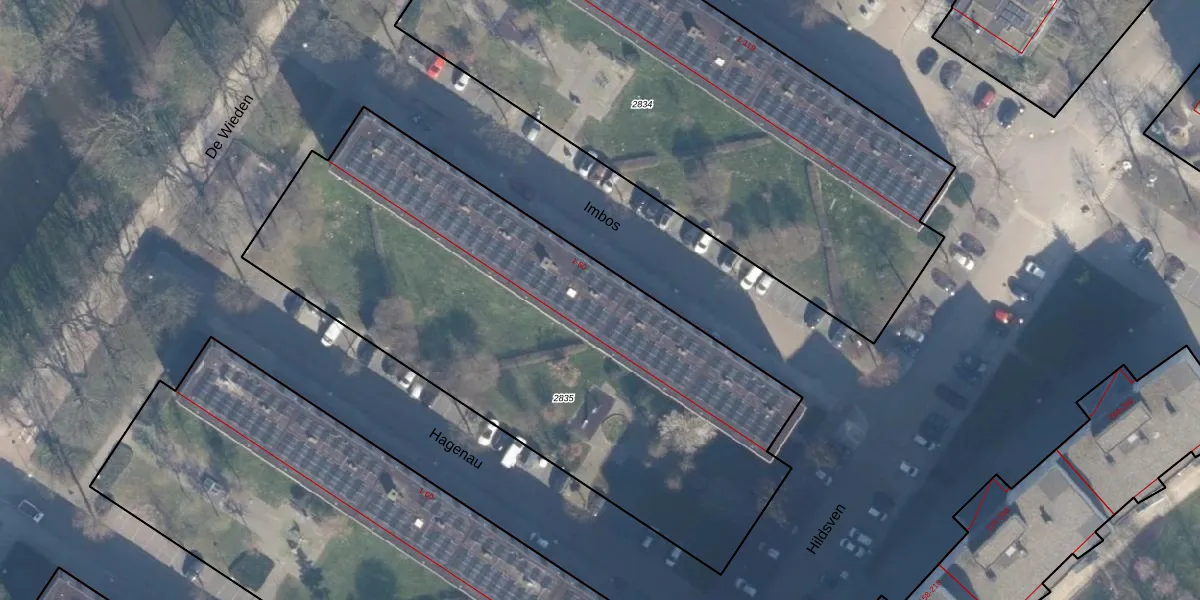 Het perceel waarop Imbos 25 staat heeft een oppervlakte van 2976 m². Dit is een zeer groot perceel. De perceeloppervlakte wordt geregistreerd door het Kadaster. Gedetailleerde informatie over de maten van dit perceel kunt u vinden in het rapport Kadastrale kaart met maatvoering van Imbos 25.