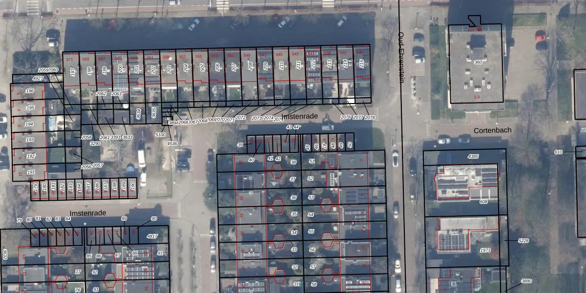 Het perceel waarop Imstenrade 13 staat heeft een oppervlakte van 18 m². Dit is een klein perceel. De perceeloppervlakte wordt geregistreerd door het Kadaster. Gedetailleerde informatie over de maten van dit perceel kunt u vinden in het rapport Kadastrale kaart met maatvoering van Imstenrade 13.