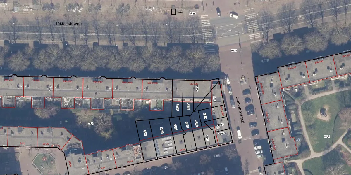 Insulindeweg 110 is gelegen op kadastraal perceel ASD19W3626. Deze kadastrale aanduiding is uniek en wordt gebruikt door het Kadaster om eigendomsrechten en andere zakelijke rechten vast te leggen. Het perceel maakt onderdeel uit van de kadastrale gemeente Amsterdam.
