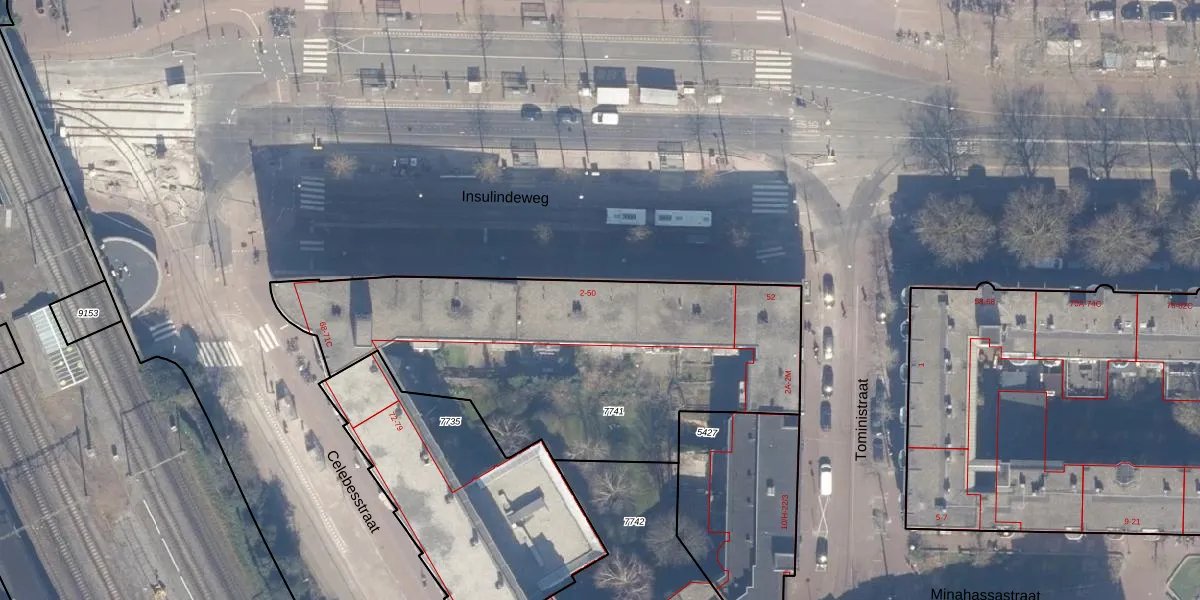Insulindeweg 22 is gelegen op kadastraal perceel ASD19W7741. Deze kadastrale aanduiding is uniek en wordt gebruikt door het Kadaster om eigendomsrechten en andere zakelijke rechten vast te leggen. Het perceel maakt onderdeel uit van de kadastrale gemeente Amsterdam.