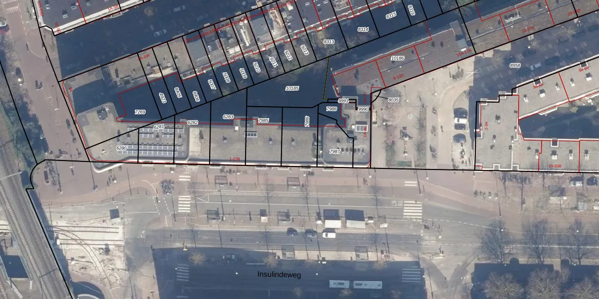 Insulindeweg 25-A is gelegen op kadastraal perceel ASD15S7986. Deze kadastrale aanduiding is uniek en wordt gebruikt door het Kadaster om eigendomsrechten en andere zakelijke rechten vast te leggen. Het perceel maakt onderdeel uit van de kadastrale gemeente Amsterdam.