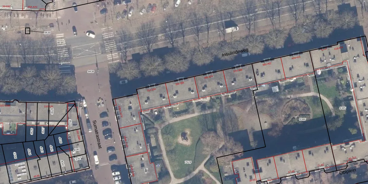Insulindeweg 342 is gelegen op kadastraal perceel ASD19W7624. Deze kadastrale aanduiding is uniek en wordt gebruikt door het Kadaster om eigendomsrechten en andere zakelijke rechten vast te leggen. Het perceel maakt onderdeel uit van de kadastrale gemeente Amsterdam.
