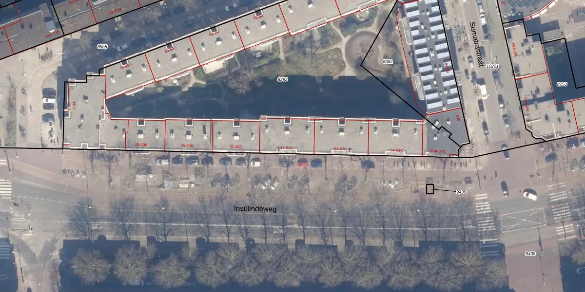 Insulindeweg 49-B is gelegen op kadastraal perceel ASD15S8393. Deze kadastrale aanduiding is uniek en wordt gebruikt door het Kadaster om eigendomsrechten en andere zakelijke rechten vast te leggen. Het perceel maakt onderdeel uit van de kadastrale gemeente Amsterdam.
