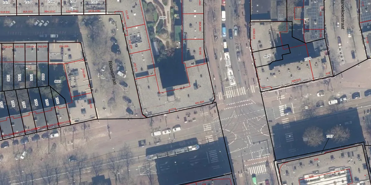 Het adres ligt op het perceel ASD15-S-8696, dat zich in de kadastrale gemeente Amsterdam bevindt. De gemiddelde perceeloppervlakte in de kadastrale gemeente Amsterdam is 537,06 m². Dit perceel is met zijn 3070 m² dus groter dan gemiddeld. De grootste perceeloppervlakte in de kadastrale gemeente is 14,5 ha. De kleinste oppervlakte bedraagt 0 m². Op het perceel zijn 90 adressen aanwezig. De huidige grenzen van het perceel zijn digitaal in de Basisregistratie Kadaster (BRK) geregistreerd op 05-02-2007.
