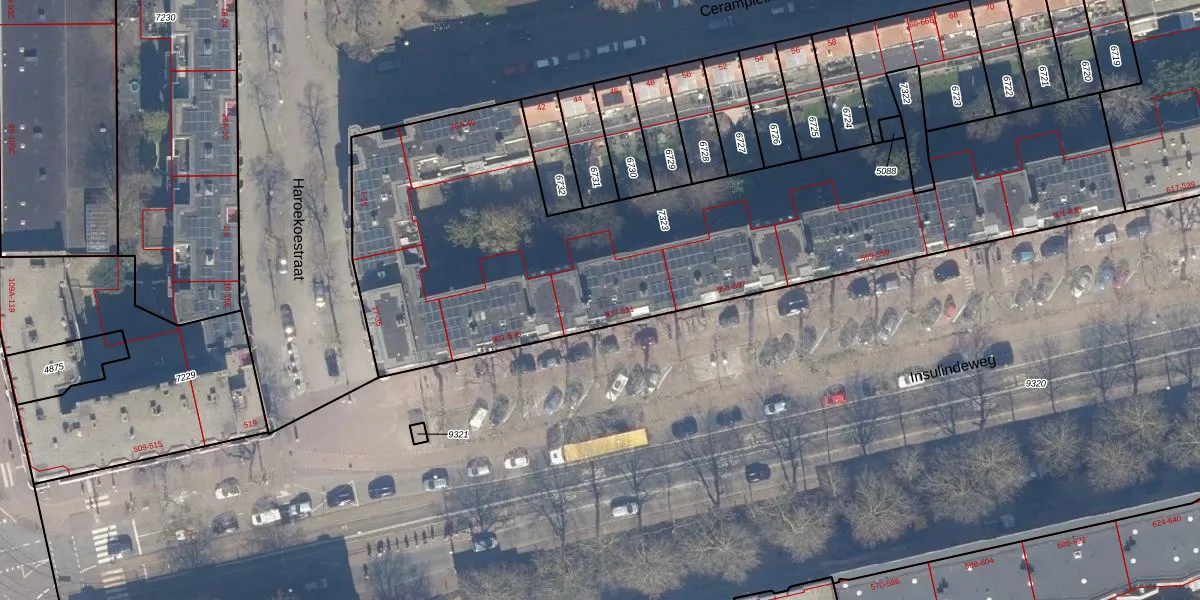 Insulindeweg 543 is gelegen op kadastraal perceel ASD19W7323. Deze kadastrale aanduiding is uniek en wordt gebruikt door het Kadaster om eigendomsrechten en andere zakelijke rechten vast te leggen. Het perceel maakt onderdeel uit van de kadastrale gemeente Amsterdam.