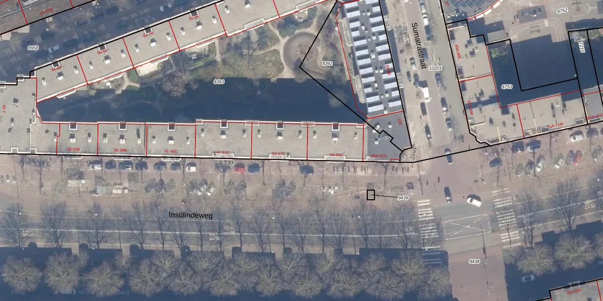 Insulindeweg 55-B is gelegen op kadastraal perceel ASD15S8393. Deze kadastrale aanduiding is uniek en wordt gebruikt door het Kadaster om eigendomsrechten en andere zakelijke rechten vast te leggen. Het perceel maakt onderdeel uit van de kadastrale gemeente Amsterdam.