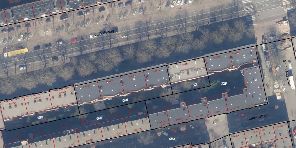 Insulindeweg 624 is gelegen op kadastraal perceel ASD19W7834. Deze kadastrale aanduiding is uniek en wordt gebruikt door het Kadaster om eigendomsrechten en andere zakelijke rechten vast te leggen. Het perceel maakt onderdeel uit van de kadastrale gemeente Amsterdam.