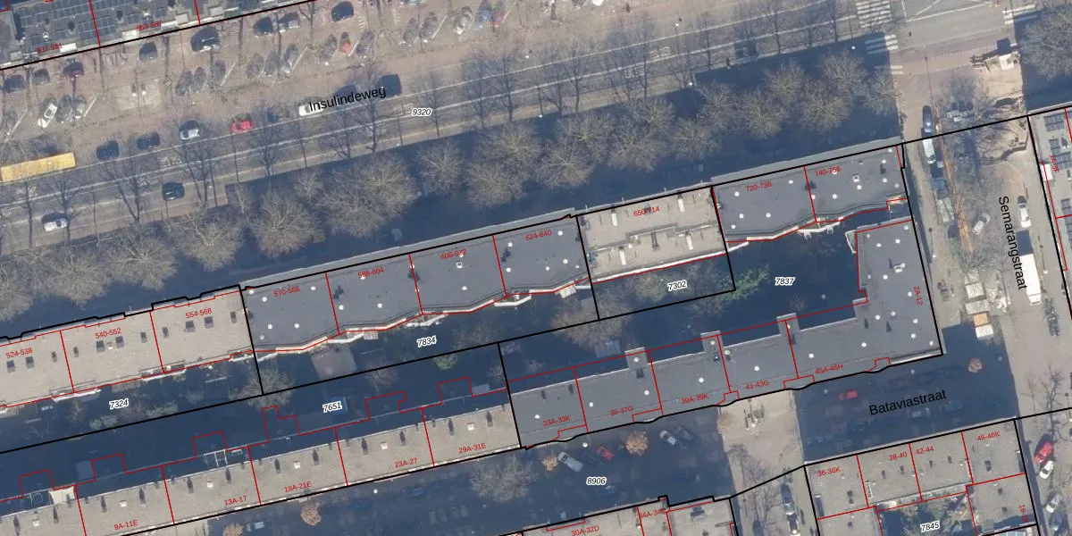Insulindeweg 636 is gelegen op kadastraal perceel ASD19W7834. Deze kadastrale aanduiding is uniek en wordt gebruikt door het Kadaster om eigendomsrechten en andere zakelijke rechten vast te leggen. Het perceel maakt onderdeel uit van de kadastrale gemeente Amsterdam.