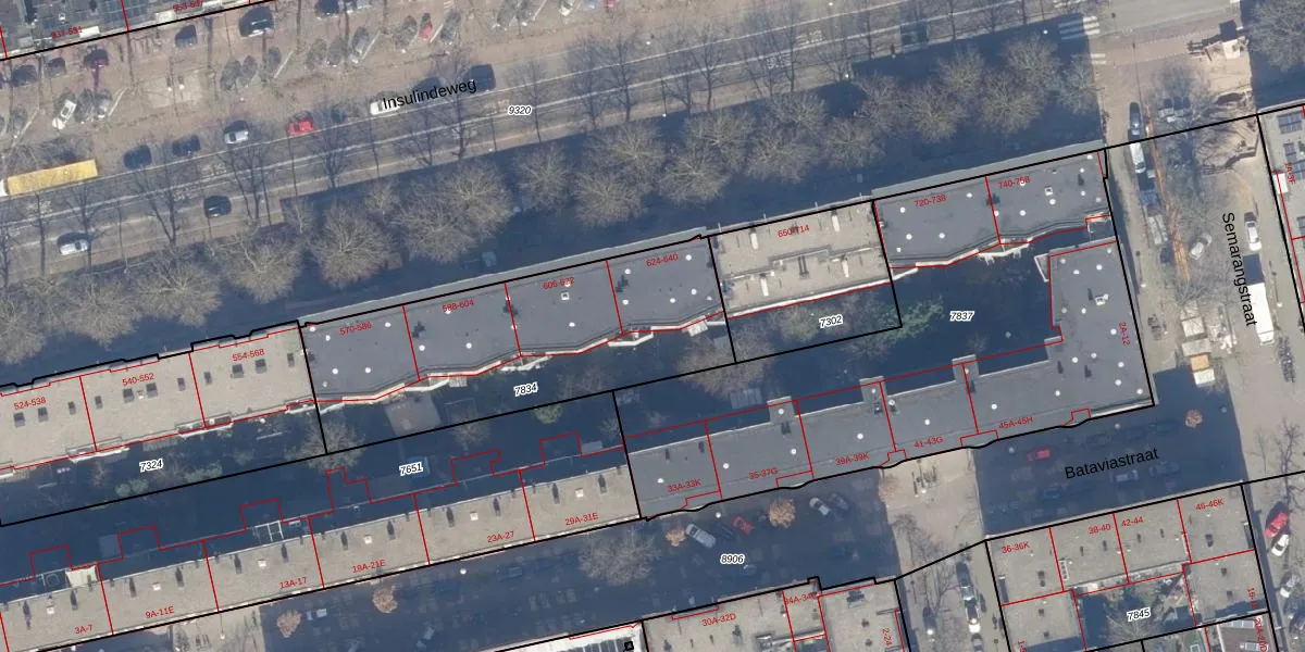 Insulindeweg 640 is gelegen op kadastraal perceel ASD19W7834. Deze kadastrale aanduiding is uniek en wordt gebruikt door het Kadaster om eigendomsrechten en andere zakelijke rechten vast te leggen. Het perceel maakt onderdeel uit van de kadastrale gemeente Amsterdam.