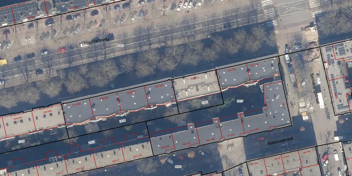 Insulindeweg 650 is gelegen op kadastraal perceel ASD19W7302. Deze kadastrale aanduiding is uniek en wordt gebruikt door het Kadaster om eigendomsrechten en andere zakelijke rechten vast te leggen. Het perceel maakt onderdeel uit van de kadastrale gemeente Amsterdam.