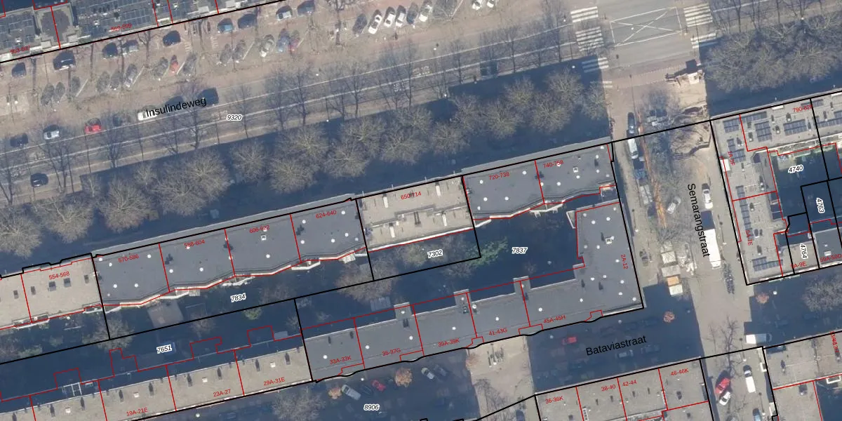 Insulindeweg 686 is gelegen op kadastraal perceel ASD19W7302. Deze kadastrale aanduiding is uniek en wordt gebruikt door het Kadaster om eigendomsrechten en andere zakelijke rechten vast te leggen. Het perceel maakt onderdeel uit van de kadastrale gemeente Amsterdam.