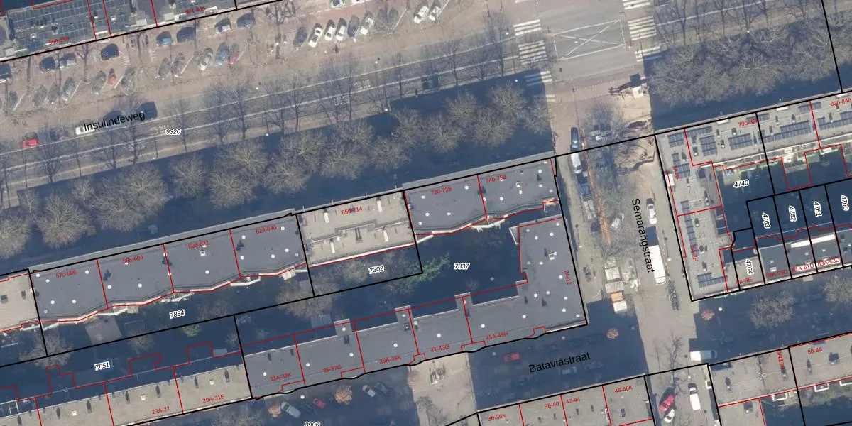Insulindeweg 724 is gelegen op kadastraal perceel ASD19W7837. Deze kadastrale aanduiding is uniek en wordt gebruikt door het Kadaster om eigendomsrechten en andere zakelijke rechten vast te leggen. Het perceel maakt onderdeel uit van de kadastrale gemeente Amsterdam.