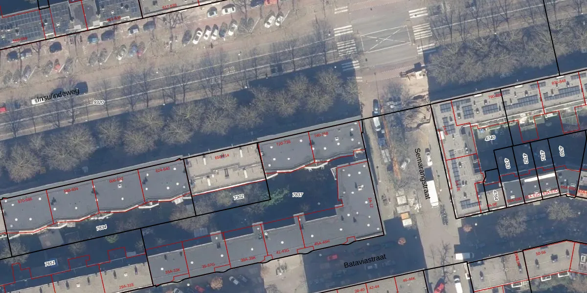 Insulindeweg 732 is gelegen op kadastraal perceel ASD19W7837. Deze kadastrale aanduiding is uniek en wordt gebruikt door het Kadaster om eigendomsrechten en andere zakelijke rechten vast te leggen. Het perceel maakt onderdeel uit van de kadastrale gemeente Amsterdam.