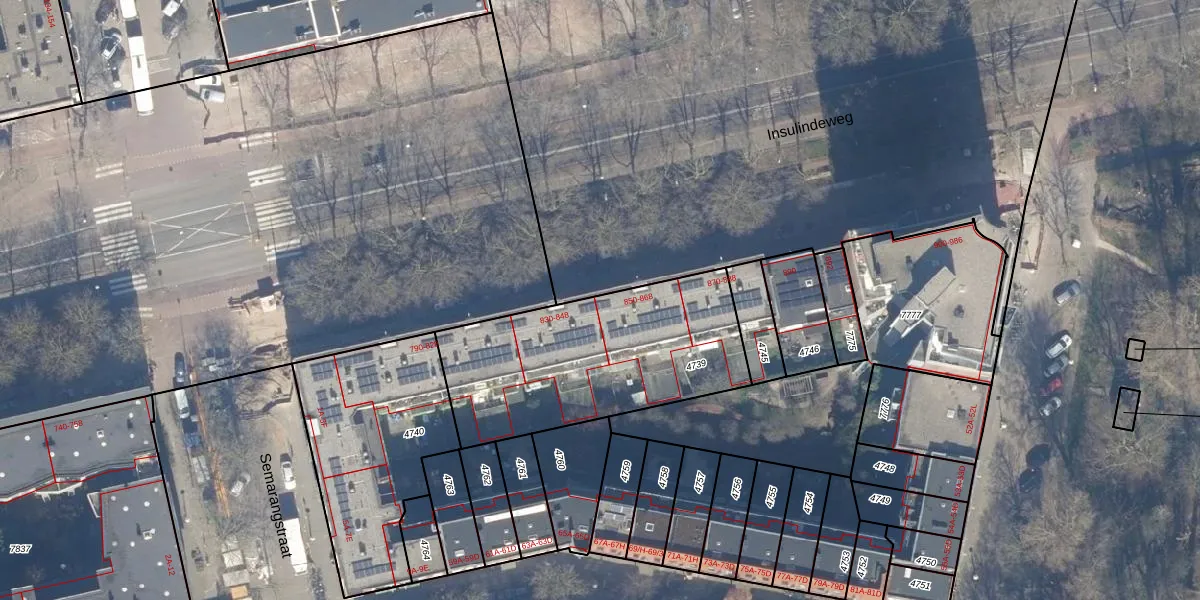 Insulindeweg 854 is gelegen op kadastraal perceel ASD19W4739. Deze kadastrale aanduiding is uniek en wordt gebruikt door het Kadaster om eigendomsrechten en andere zakelijke rechten vast te leggen. Het perceel maakt onderdeel uit van de kadastrale gemeente Amsterdam.