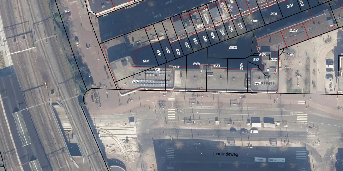 Insulindeweg 9-B is gelegen op kadastraal perceel ASD15S6282. Deze kadastrale aanduiding is uniek en wordt gebruikt door het Kadaster om eigendomsrechten en andere zakelijke rechten vast te leggen. Het perceel maakt onderdeel uit van de kadastrale gemeente Amsterdam.