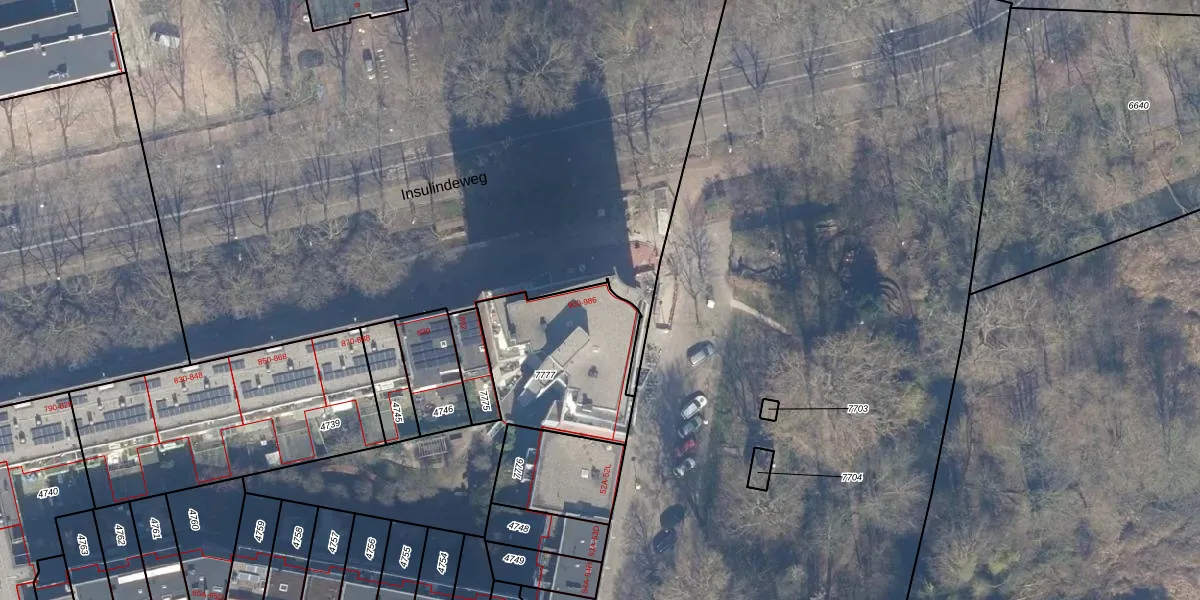 Insulindeweg 936 is gelegen op kadastraal perceel ASD19W7777. Deze kadastrale aanduiding is uniek en wordt gebruikt door het Kadaster om eigendomsrechten en andere zakelijke rechten vast te leggen. Het perceel maakt onderdeel uit van de kadastrale gemeente Amsterdam.