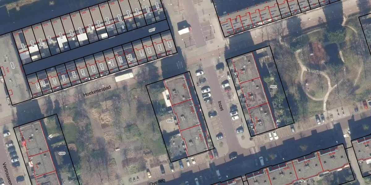Het perceel waarop Inzet 12 staat heeft een oppervlakte van 1068 m². Dit is een zeer groot perceel. De perceeloppervlakte wordt geregistreerd door het Kadaster. Gedetailleerde informatie over de maten van dit perceel kunt u vinden in het rapport Kadastrale kaart met maatvoering van Inzet 12.