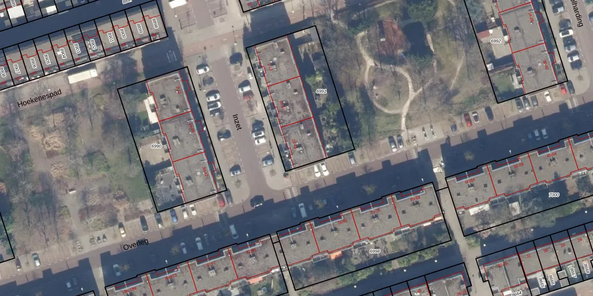 Het perceel waarop Inzet 33 staat heeft een oppervlakte van 1075 m². Dit is een zeer groot perceel. De perceeloppervlakte wordt geregistreerd door het Kadaster. Gedetailleerde informatie over de maten van dit perceel kunt u vinden in het rapport Kadastrale kaart met maatvoering van Inzet 33.