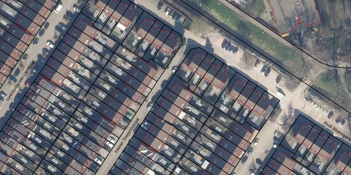 Het perceel waarop Irawan Soejonostraat 1 staat heeft een oppervlakte van 212 m². Dit is een middelgroot perceel. De perceeloppervlakte wordt geregistreerd door het Kadaster. Gedetailleerde informatie over de maten van dit perceel kunt u vinden in het rapport Kadastrale kaart met maatvoering van Irawan Soejonostraat 1.