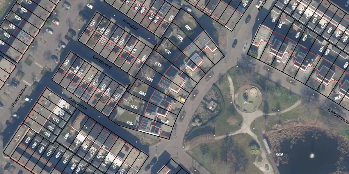 Gebruik de zoekbalk of klik op een perceel voor informatie over de adressen binnen dit perceel.