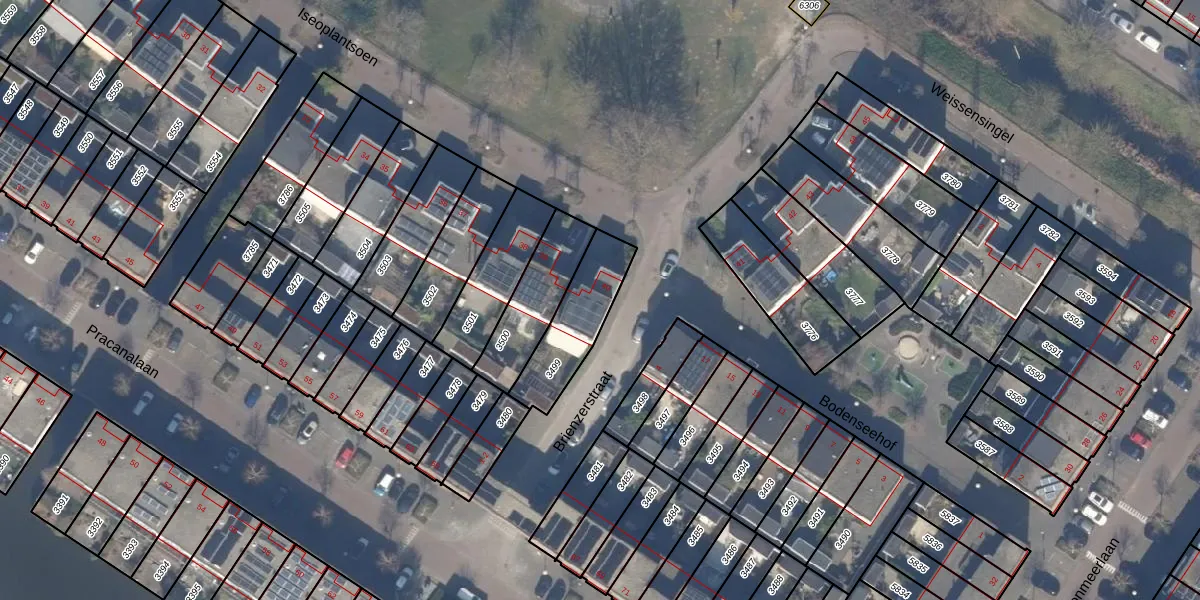 Gebruik de zoekbalk of klik op een perceel voor informatie over de adressen binnen dit perceel.