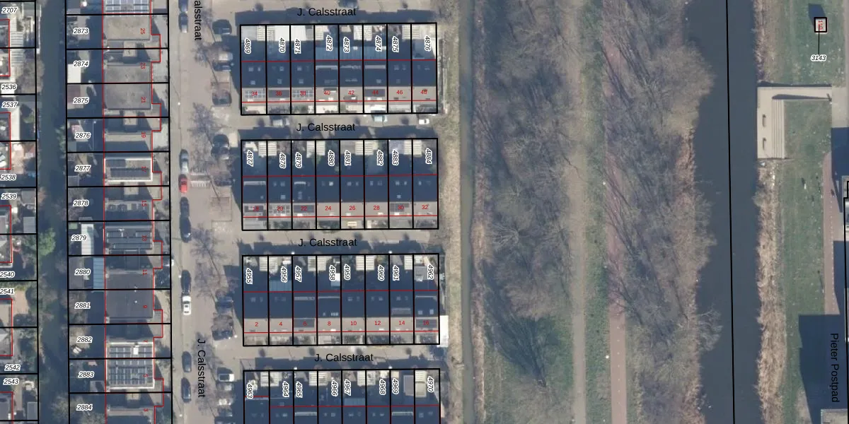 Het perceel waarop J. Calsstraat 32 staat heeft een oppervlakte van 127 m². Dit is een middelgroot perceel. De perceeloppervlakte wordt geregistreerd door het Kadaster. Gedetailleerde informatie over de maten van dit perceel kunt u vinden in het rapport Kadastrale kaart met maatvoering van J. Calsstraat 32.