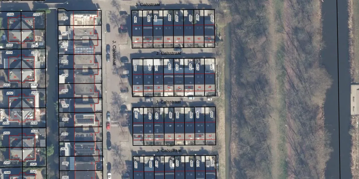 Het perceel waarop J. Calsstraat 42 staat heeft een oppervlakte van 121 m². Dit is een middelgroot perceel. De perceeloppervlakte wordt geregistreerd door het Kadaster. Gedetailleerde informatie over de maten van dit perceel kunt u vinden in het rapport Kadastrale kaart met maatvoering van J. Calsstraat 42.
