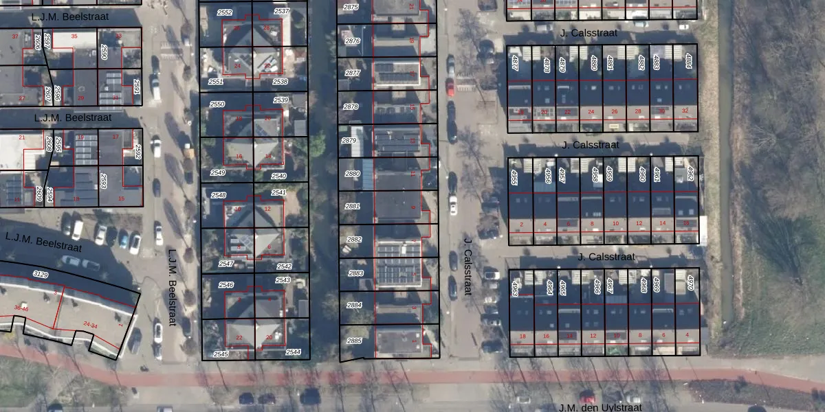 Het perceel waarop J. Calsstraat 9 staat heeft een oppervlakte van 196 m². Dit is een middelgroot perceel. De perceeloppervlakte wordt geregistreerd door het Kadaster. Gedetailleerde informatie over de maten van dit perceel kunt u vinden in het rapport Kadastrale kaart met maatvoering van J. Calsstraat 9.