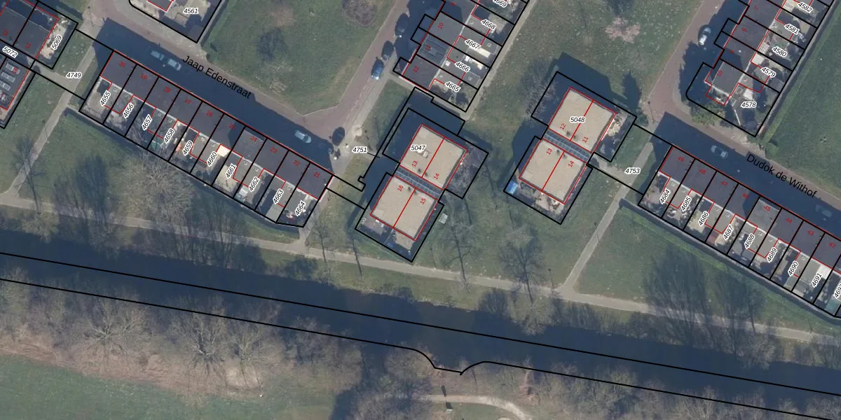 Jaap Edenstraat 15 is gelegen op kadastraal perceel STN02I5047. Deze kadastrale aanduiding is uniek en wordt gebruikt door het Kadaster om eigendomsrechten en andere zakelijke rechten vast te leggen. Het perceel maakt onderdeel uit van de kadastrale gemeente Sloten Noord-Holland.