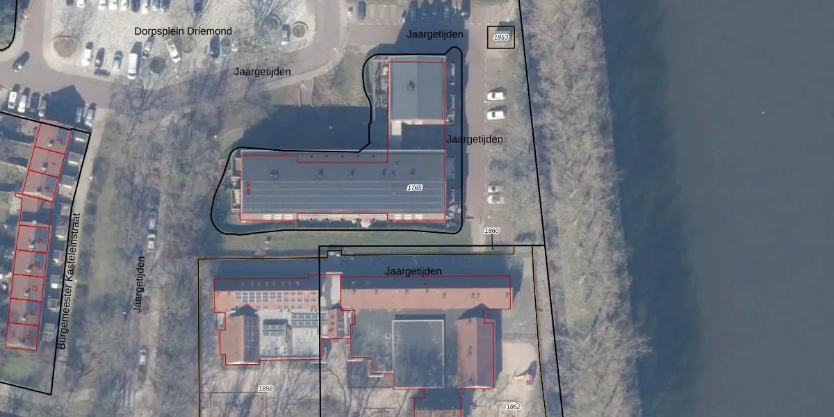 Het perceel waarop Jaargetijden 12 staat heeft een oppervlakte van 1656 m². Dit is een zeer groot perceel. De perceeloppervlakte wordt geregistreerd door het Kadaster. Gedetailleerde informatie over de maten van dit perceel kunt u vinden in het rapport Kadastrale kaart met maatvoering van Jaargetijden 12.