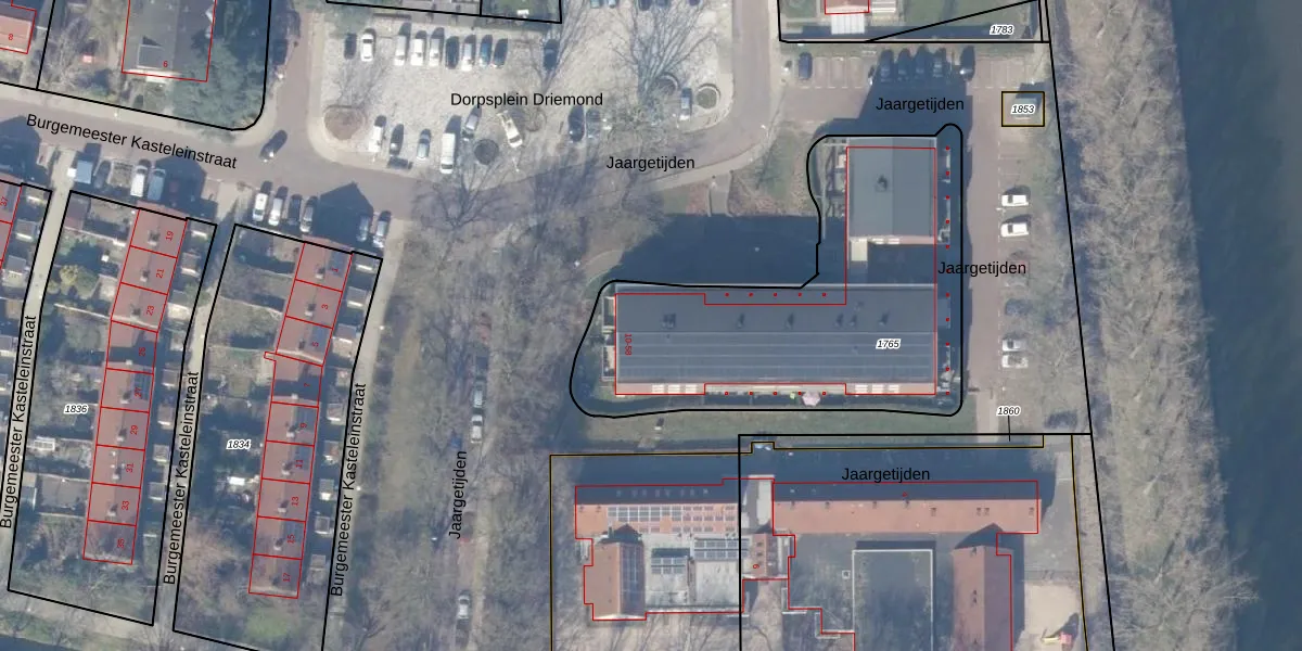 Het perceel waarop Jaargetijden 38 staat heeft een oppervlakte van 1656 m². Dit is een zeer groot perceel. De perceeloppervlakte wordt geregistreerd door het Kadaster. Gedetailleerde informatie over de maten van dit perceel kunt u vinden in het rapport Kadastrale kaart met maatvoering van Jaargetijden 38.